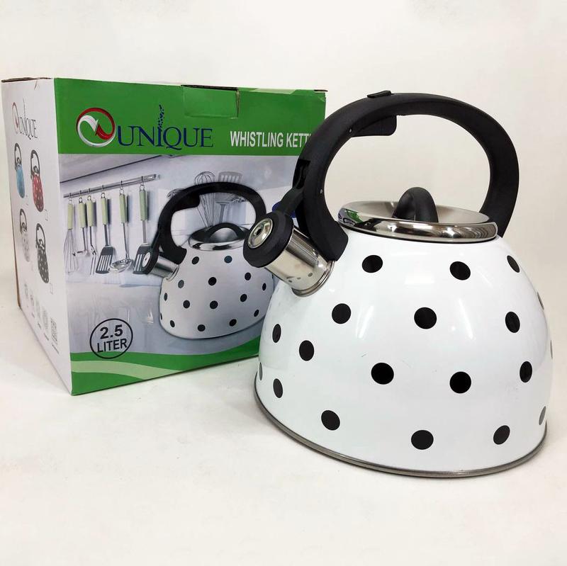 Чайник с свистком для газовой плиты unique un-5301 2.5 л горошек, чайники для плит. цвет:...