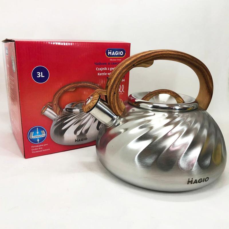 Чайник magio mg-1194 со свистком, чайник со свистком для индукционной плиты, чайник газовы...