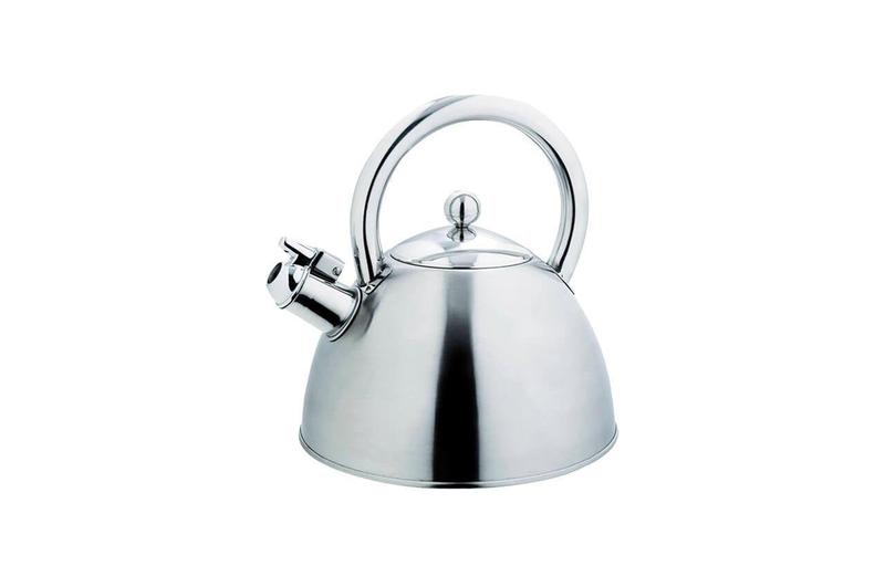 Чайник объемом в 2,5 л изготовлен из высококачественной нержавеющей стали с глянцевой полировкой. Оснащен клапаном-свистком и рычагом для безопасного открывания/закрывания. Однослойное индукционное дно.Крышка чайника стальная с бакелитовой ручкой. Подходит для всех типов плит, включая индукционные.