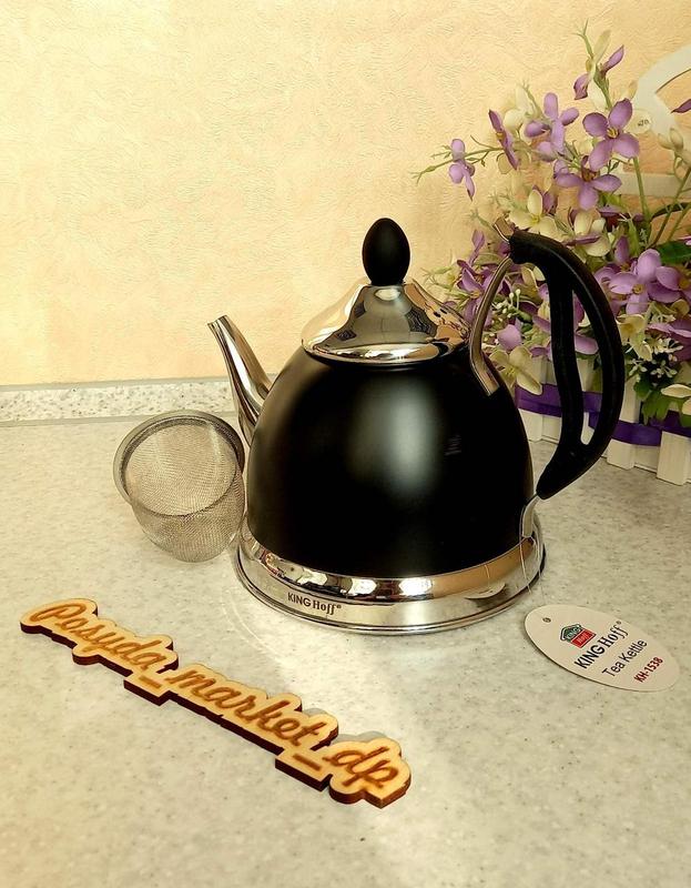 Чайник заварочный 1л KingHoff KH-1538 Характеристики: Материал: нержавеющая сталь Объём: 1л Цвет: черный Можно мыть в посудомоечной машине