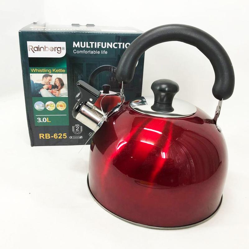 Чайник rainberg rb-625 из нержавеющей стали со свистком 3л, красивый чайник со свистком. ц...