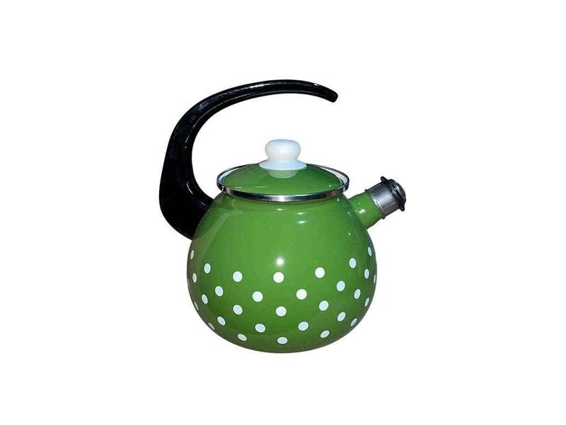 Чайник эмалированный 2.5л с н/ж ободком и свистком полька (зеленая) тм idilia