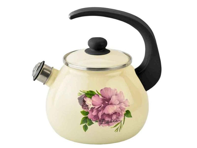 Чайник эмалированный 2,5л /2 с н/ж ободком и свистком лаура (молочная) i27115/2 тм idilia