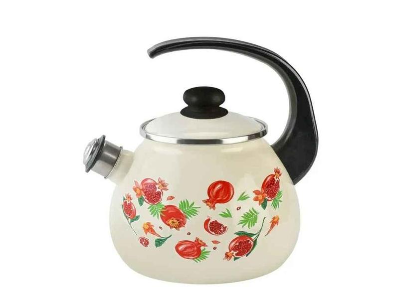 Чайник эмалированный 2,5л /2 с н/ж ободком и свистком гранат (молочная) i27115/2 тм idilia