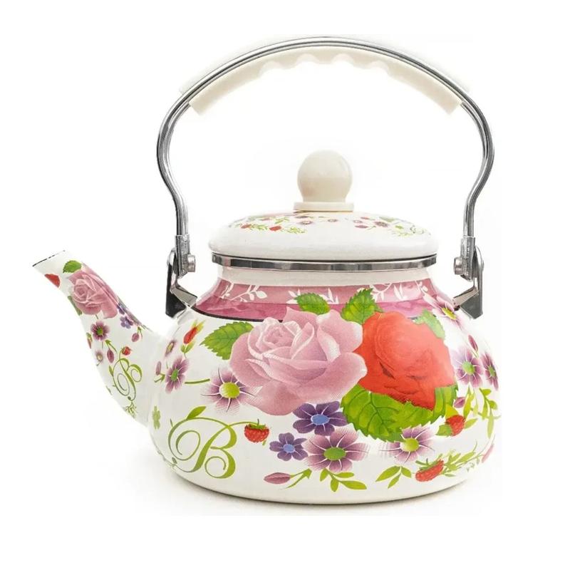 Чайник эмалированный a-plus 2.5 л (0964) красные + розовые цветы + малина