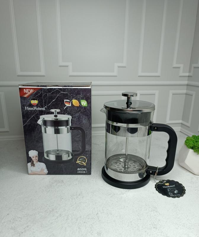 Это современная кухонная посуда и аксессуары, которые создают неповторимую атмосферу уюта и семейных традиций. Френч-пресс - чайник для приготовления молотого кофе или заварного чая методом отстаивания и отжима. Это одно из самых удобных устройств, позволяющих сэкономить время и насладиться любимым напитком. Время на заваривание во френч-прессе требуется гораздо меньше, чем в турке или обычном чайнике. Кроме того, френч-пресс можно использовать как каждый день, так и для сервировки праздничного стола, благодаря его стильному и эффектному внешнему виду. Френч-прес 800 мл заварник Характеристики: Материал колбы: термостойкое стекло Материал фильтра: коррозионностойкая сталь Материал крышки: коррозионностойкая сталь Материал ручки: коррозионностойкая сталь/пластик Дно: термостойкое стекло Объем: 800 мл Уход: мыть вручную