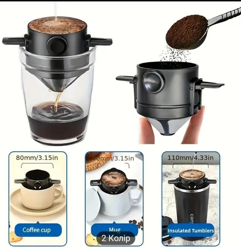 Пуровер с многоразовым фильтром из нержавеющей стали, фильтр для кофе narodfarma 110 мл