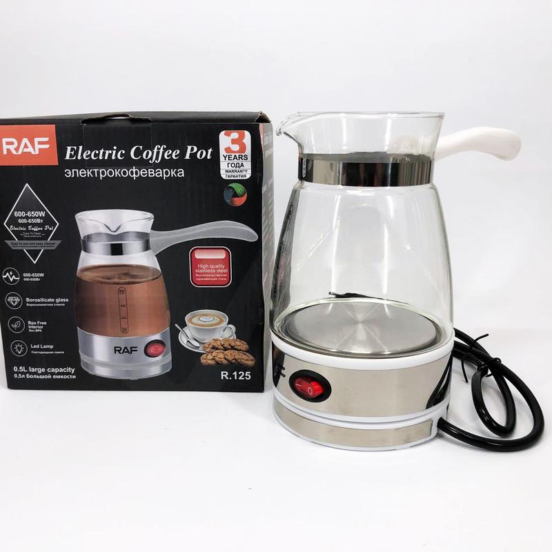 Электрическая турка для кофе raf r.125 кофеварка со стеклянной чашей 500мл 600 вт. цвет: б...