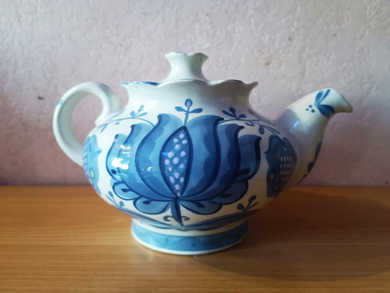 Фарфоровый винтажный заварник, роспись Гжель. Объём 1,1л. Без сколов, трещин и реставрации.