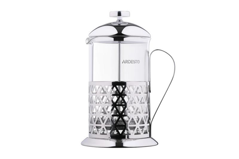Френч-пресс Ardesto Gemini Fasano Френч-пресс Ardesto Gemini Fasano станет отличным помощником на кухне для приготовления заварного чая методом отстаивания. Является одним из самых удобных приспособлений, позволяющих сэкономить время и насладиться любимым напитком. Френч-пресс отлично подойдет для ежедневного использования или для сервировки праздничного стола, благодаря стильному и современному внешнему виду. Характеристики: - Тип: френч-пресс - Материал колбы: стекло - Материал ручки: нержавеющая сталь - Материал корпуса: нержавеющая сталь - Цвет: серебристый - Серия: Gemini Fasano - Производитель: Ardesto