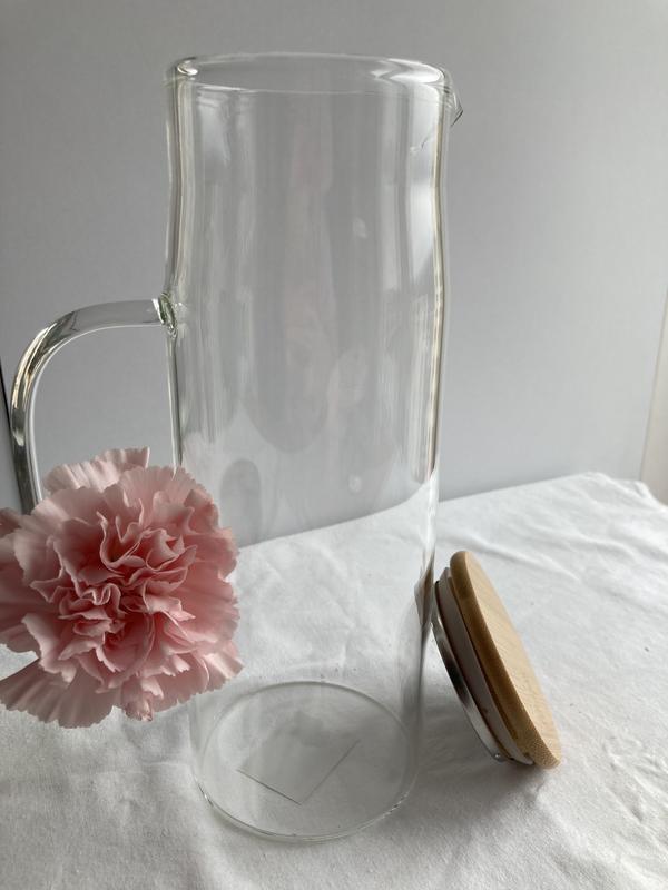 Скляний глек з бамбуковою кришкою, обʼєм 1.2 л. Простота та практичність - це про нього. Найкращий вибір для літніх днів.