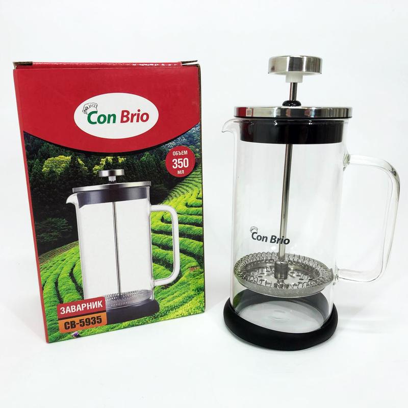 - Объем: 350 мл - Термостойкое боросиликатное стекло - Высококачественный пластик - Разборная конструкция для удобства ухода - Идеально подходит для заваривания кофе, чая и трав - Элегантный и практичный дизайн Френч-пресс Con Brio CB-5935 объемом 350 мл изготовлен из термостойкого боросиликатного стекла, которое устойчиво к высоким температурам и перепадам. Корпус и ручка выполнены из высококачественного пластика, обеспечивая прочность и удобство в использовании. Разборная конструкция облегчает уход за изделием, делая его идеальным выбором для заваривания кофе, чая и трав. Френч- пресс сочетает в себе элегантный и практичный дизайн. Френч-пресс Con Brio CB-5935 -- это маленькое чудо, воплощающее в себе изящество и практичность. Прозрачное боросиликатное стекло открывает взору игру световых бликов, а его компактный объем в 350 мл идеально подходит для индивидуальных чаепитий. Высококачественный пластик придаёт изделию прочность, а элегантный дизайн превращает каждую чашку кофе или чая в момент наслаждения. Френч-пресс (заварник) идеально подходит для приготовления молотого кофе или заварного чая, трав методом отстаивания. Это одно из самых удобных приспособлений, позволяющих сэкономить время и насладиться любимым напитком. Кроме того, заварочный чайник можно использовать как ежедневно, так и для сервировки праздничного стола, благодаря его стильному и эффектному внешнему виду.