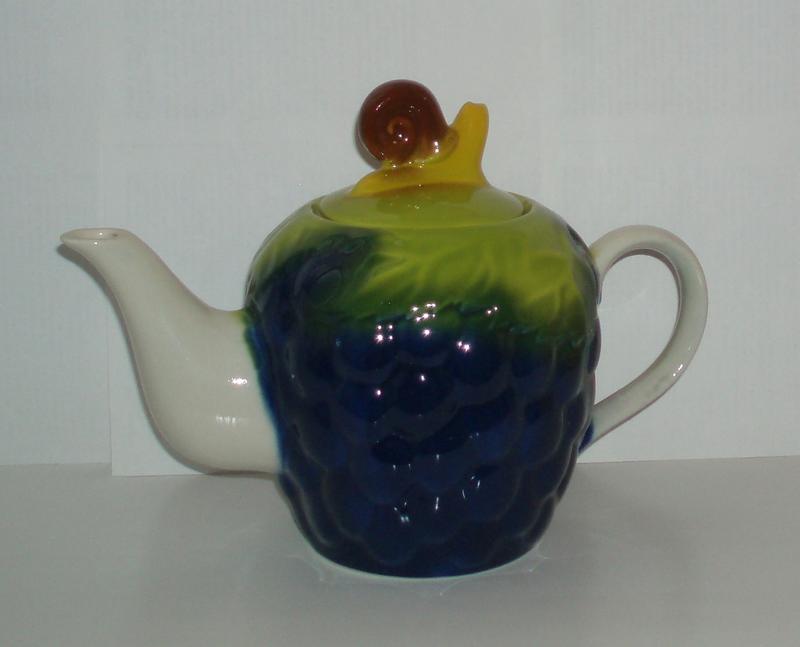 Новый заварочный чайник выполнен в виде грозди винограда. Объем 1,1 л, высота 18 см. Сделано в Украине. Такой заварочный чайник долго сохраняет тепло, прост в уходе и не выделяет токсичных веществ. А еще: * Керамика - пористый материал, поэтому напиток обогащается кислородом и становится более богатым на вкус. * Чайник равномерно распределяет тепло по всей поверхности сосуда, поэтому подходит для чая с длительной заваркой. Пересилу оплачивает покупатель, надежно упаковаем сами.
