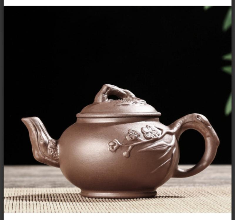 Чайник глиняный 150 мл маленький сливовый бамбук коричневый изящная посуда для заваривания...