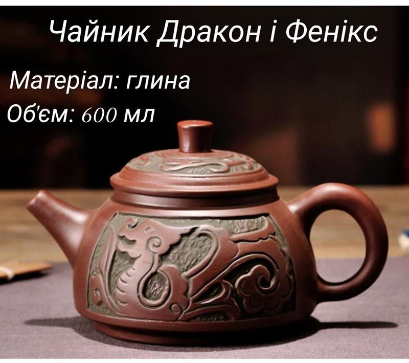 Чайник "дракон і фенікс" 600 мл, глиняний чайник для чайної церемонії, чайник для заварюва...
