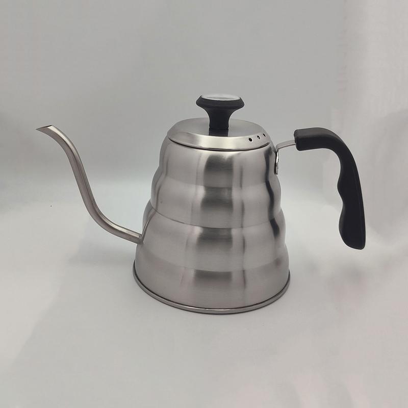Изящный чайник предназначен для заваривания кофе. Он изготовлен из пищевой нержавеющей стали. Емкость - 1,2 л. Носик чайника длинный и тонкий, имеет точно рассчитанный изгиб, который обеспечивает равномерный нажим тонкой цевье горячей воды, что позволяет полностью контролировать скорость протока и процесс правильного приготовления кофе. В крышке есть специальные отверстия, которые дают возможность выходить пару. Удобная ручка позволяет крепко держать чайник в руке.