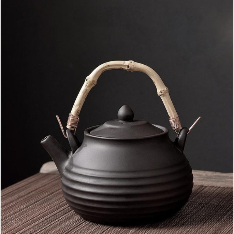 Чайник с бамбуковой ручкой "волна" чёрный 500мл, чайник глиняный, чайник из глины