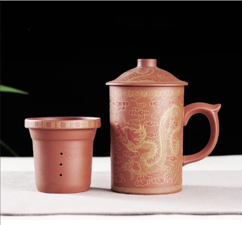 Чашка глиняная с ситом 300 мл,чашка с драконами,чашка заварочная,чашка глиняная для заварк...