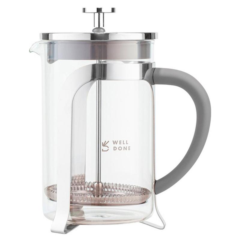 Френч-пресс Well Done станет отличным помощником на кухне для приготовления заварного чая методом отстаивания. Является одним из самых удобных приспособлений, позволяющих сэкономить время и насладиться любимым напитком. Френч-пресс отлично подойдет для ежедневного использования или для сервировки праздничного стола, благодаря стильному и современному внешнему виду. Характеристики: - Тип: френч-пресс - Материал колбы: стекло, пластик, сталь - Материал ручки: бакелит - Материал фильтра: нержавеющая сталь - Форма: круглая - Цвет: разные цвета - Производитель: Well Done