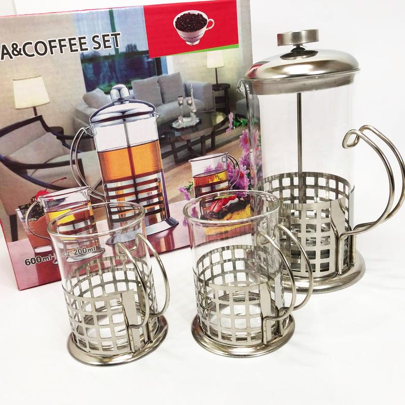 👉 Френч-пресс из качественого материала UNIQUE UN-1155 0.6 л, Стильный стеклянный заварочный чайник YZ-45 💎 Набор UNIQUE UN-1154 - комплект из пресс-заварника объемом 600 мл и 4-х чашек объемами 200 мл каждая, выполненных в одинаковом стиле. Этот практичный набор со стильным дизайном сделает еще более приятной церемонию утреннего семейного чаепития, рабочего кофе-брейка, вечерней уютной встречи с друзьями. Он бережно сохранит аромат и полезные вещества Вашего любимого сорта кофе или чая. 💎 Френч-пресс оснащен колбой из жаропрочного боросиликатного стекла. Термостойкость стекла до 120°С. Колба помещена в оправу с ручкой, комплектуется крышкой с пресс-фильтром из нержавеющей стали. Набор разрешается мыть в посудомоечной машине. 💎 Характеристики: - ⭐ Вид товара: набор - ⭐ Материал: стекло, сталь - ⭐ Цвет: серебро 💎 Комплектация: - ⭐ 2 чашки по 0,2 л - ⭐ Коробка - ⭐ Чайник 0,6 л 👉 Дополнительные параметры - ⭐ Материал ручки: нержавеющая сталь - ⭐ Производитель: Unique - ⭐ Тип посуды: Френч-пресс - ⭐ Ситечко: Есть - ⭐ Материал корпуса: Нержавеющая сталь - ⭐ Состояние: Новое - ⭐ Материал колбы: Термостекло - ⭐ Материал: Стекло - ⭐ Объем: 600 - ⭐ Пресс-фильтр: Есть - ⭐ Материал крышки: Нержавеющая сталь
