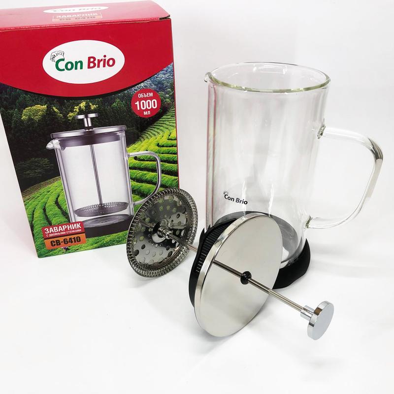 ⚙️ Заварник прозрачный, Чайники для заварки, Заварной стеклянный чайник, Многоразовый френч-пресс IX-71 🔹 Френч-пресс Con Brio станет отличным помощником на кухне для приготовления заварного чая методом отстаивания. Является одним из самых удобных приспособлений, позволяющих сэкономить время и насладиться любимым напитком. Френч-пресс отлично подойдет для ежедневного использования или для сервировки праздничного стола, благодаря стильному и современному внешнему виду. 🔹 Характеристики: - 🔸 Форма: круглая - 🔸 Материал крышки: нержавеющая сталь - 🔸 Материал ручки: термостойкое стекло - 🔸 Производитель: Con Brio - 🔸 Материал колбы: термостойкое стекло - 🔸 Тип: френч-пресс - 🔸 Цвет: прозрачный с серебристым - 🔸 Вид: с двойными стенками - 🔸 Материал дна: силикон 📝 Дополнительные параметры - 🔸 Материал колбы: Термостекло - 🔸 Тип посуды: Френч-пресс - 🔸 Материал: Стекло - 🔸 Пресс-фильтр: Есть - 🔸 Состояние: Новое - 🔸 Ситечко: Есть - 🔸 Производитель: Con Brio - 🔸 Материал крышки: Нержавеющая сталь - 🔸 Объем: 1000 - 🔸 Материал корпуса: Нержавеющая сталь - 🔸 Материал ручки: Стекло