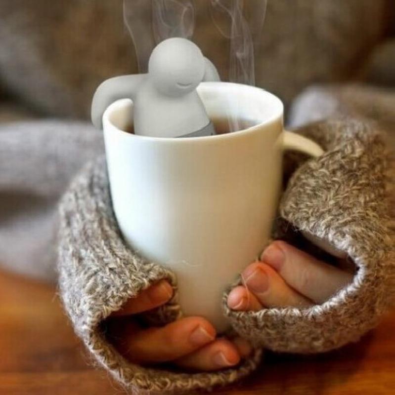 Ситечко из пищевого силикона для заваривания чая (заварник) Mr Tea – выглядит как маленький человечек. Он сделан из двух половинок. Одна из них представляет собой штаны с отверстиями, в нее и засыпается чай. Вторая половинка является туловищем с руками и головой. Засыпаете чай в первую половинку, соединяете между собой обе части и закрепляете человечка на кружке, словно он нежится в ванной. Легко моется, в т.ч. в посудомоечной машине. Ситечко Mr. Tea устанавливается в любую стандартную чашку. Выдерживает температуру от -40 до +250 градусов.