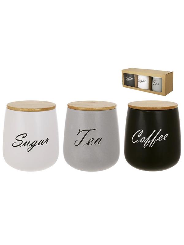 Набір (3шт) керамічних банок 1л, з бамбуковими кришками sugar, tea, coffee, колір: матовий...