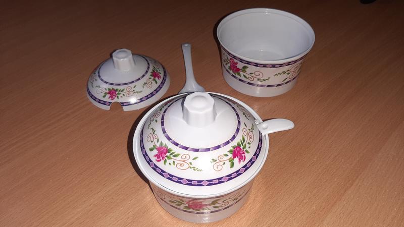 Уважно читайте умови пересилки! Пересилка товара укроштой на сумму от 150 гривен с Оплатой на карту. Безопасным заветом пересашиваю товар на сумму от 300 гривен. На передвижные элементы безопасной оплатой не пересасываю, только полная оплата на карту. Пересласка товара новой по почте от 200 гривен, оплата только на карту. Перед любой покупкой, любого товара писать продавцу для уточнения Эмность 250 мл меламиновая с ложечкой для специй, сахара, соли и других продуктов на ваш вес. Нова. Цвет белый с рисунком. Цена указана за одну эмность.