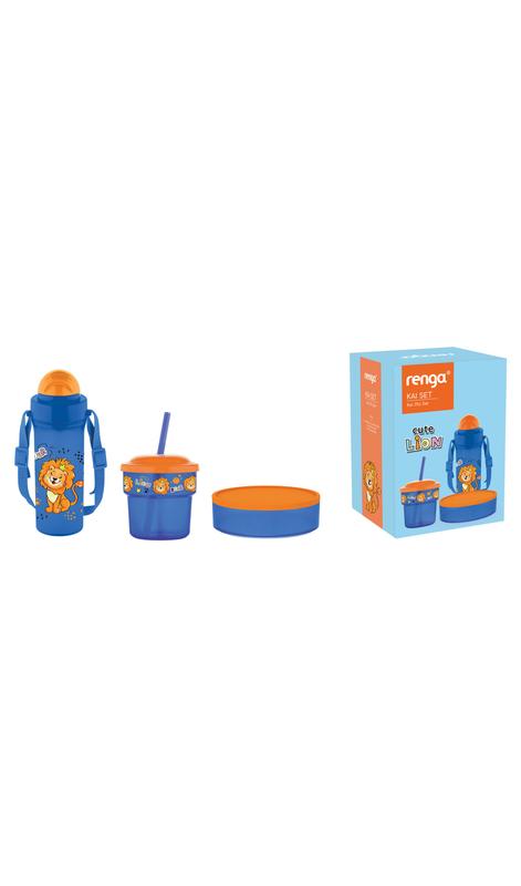 Дитячий набор kai (пляшка 300мл, чашка 250мл, контейнер 360мл) gt-g-712008 gusto, синій