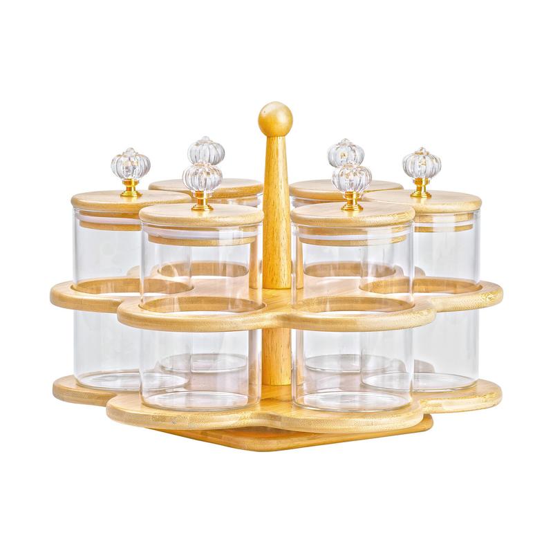 Банки для сыпучих продуктов набор из 6 штук по 580 мл на деревянной подставке hp16292