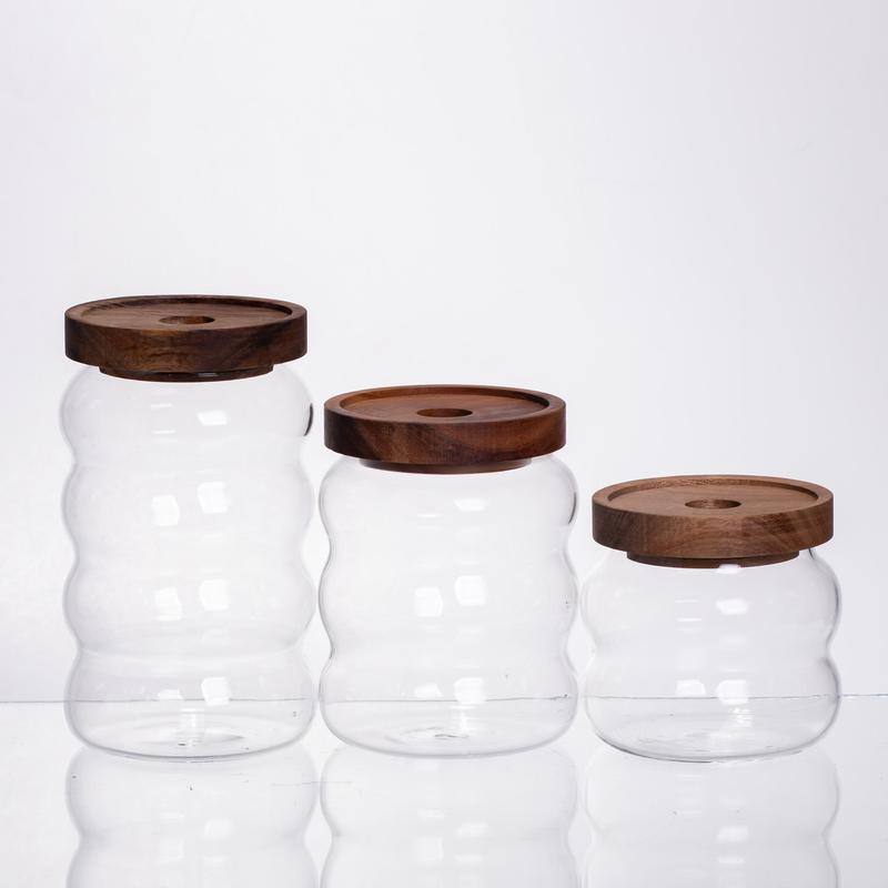 Набор стеклянных банок 3 шт 400/600/800 мл с бамбуковыми крышками, контейнеры для сыпучих...