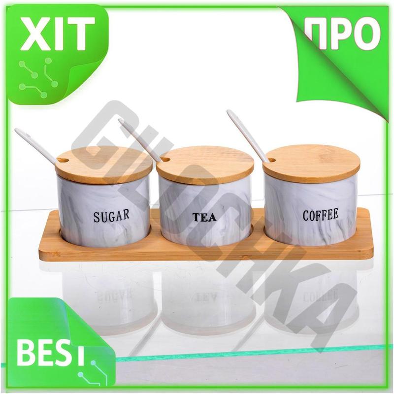 Ve набор фарфоровых банок с new version бамбуковыми крышками 3 шт. для чая кофе сахара сти...