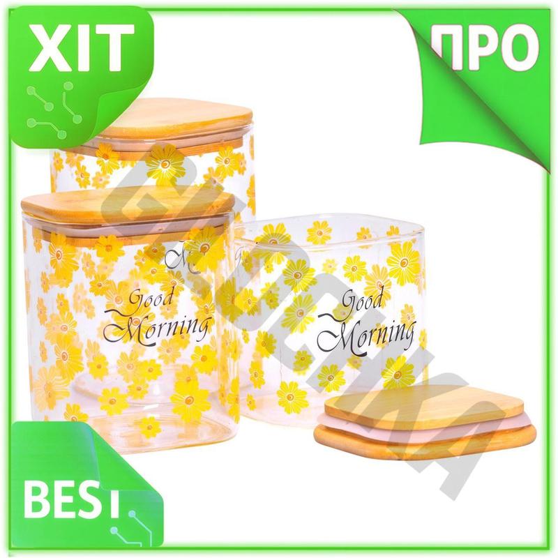 Ve банки для сыпучих продуктов new version 3 шт с бамбуковыми крышками для хранения круп с...