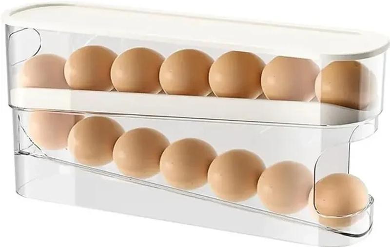 Подставка-органайзер для хранения яиц двухслойная с автоматическим качением Лоток-подставка для хранения яиц - это удобный и практичный органайзер, который поможет эффективно использовать пространство в холодильнике и сохранить свежесть яиц. Двухслойная конструкция с автоматическим качением позволяет легко доставать нужное яйцо, а также обеспечивает их безопасное хранение. Лоток изготовлен из качественного пластика, который легко моется и не впитывает запахи. Характеристики: Тип: Лоток для хранения яиц, органайзер Конструкция: Двухслойная, с автоматическим качением Емкость: 14 яиц. Материал: Пластик Цвет: Прозрачный Особенности: Автоматическое качение яиц Двухслойная конструкция для экономии места Легко моется Обеспечивает безопасное хранение яиц Компактный размер Достоинства: Экономия места в холодильнике. Удобство использования. Безопасное хранение яиц. Легкость очищения. Поддержание порядка в холодильнике.Подставка-органайзер для хранения яиц двухслойная с автоматическим качением. Лоток-подставка для хранения яиц - это удобный и практичный органайзер, который поможет эффективно использовать пространство в холодильнике и сохранить свежесть яиц. Двухслойная конструкция с автоматическим качением позволяет легко доставать нужное яйцо, а также обеспечивает их безопасное хранение. Лоток изготовлен из качественного пластика, который легко моется и не впитывает запахи.