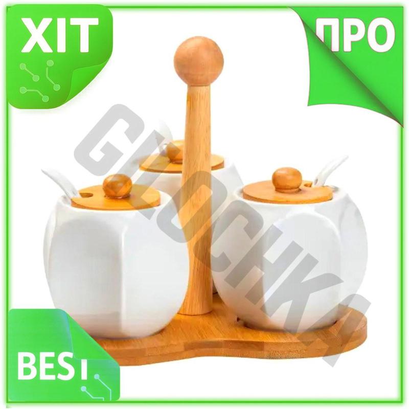 Ve набор банок для специй new version 3 шт. 200 мл керамические баночки на бамбуковой подс...