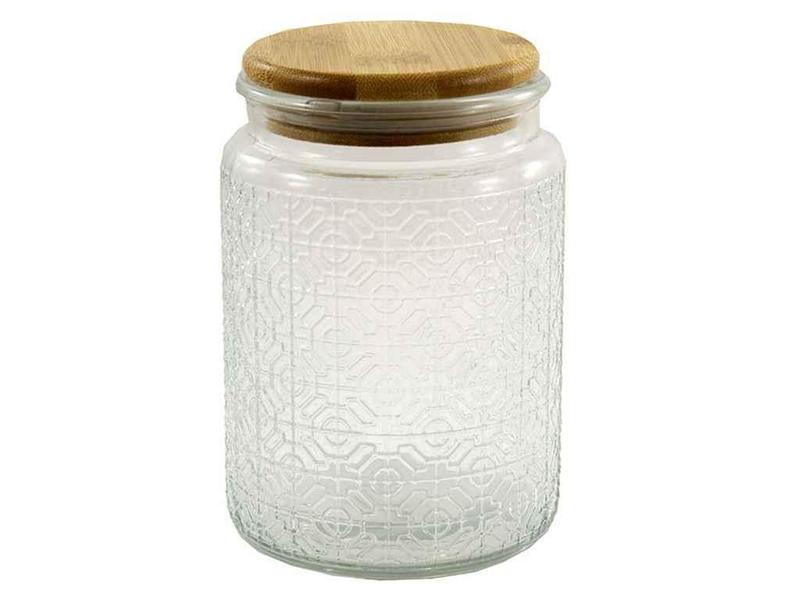 Емкость для сыпучих продуктов круглая 700мл ts23018b стеклянная рельеф с бамбук.крышкой тм...