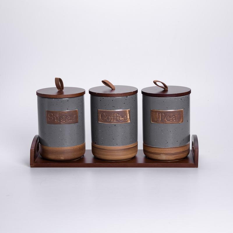 Набор фарфоровых банок для сыпучих 3 шт по 800 мл с крышками серый hp-26-1g