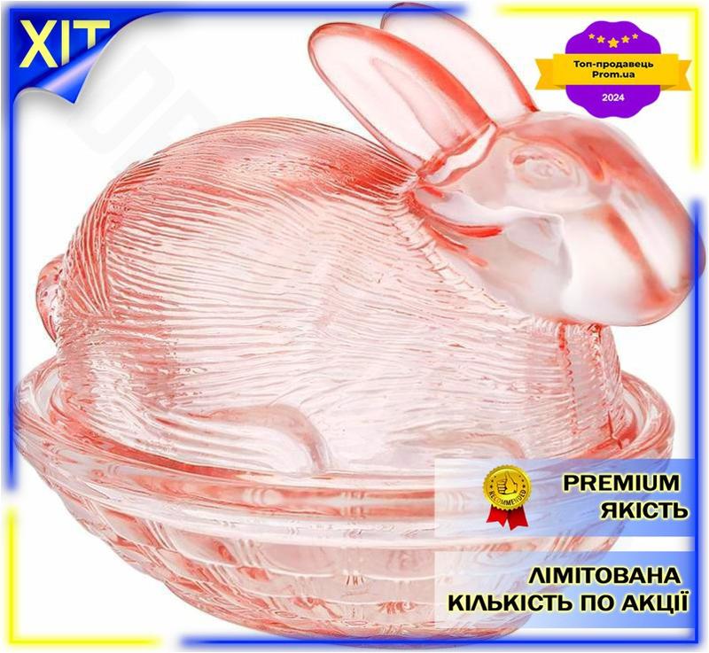 Dm скляна ємність з специфікація 2.2 кришкою кролик для насолод рожеве скло 14х10 см конте...