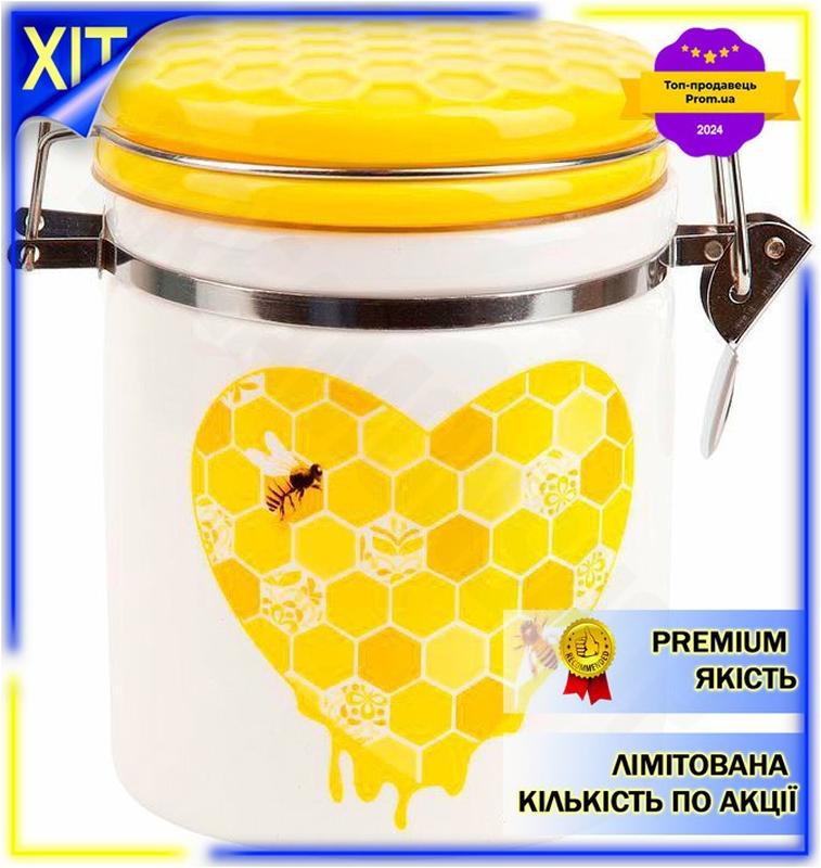 Dm банка керамічна sweet специфікація 2.2 honey 650мл для сипучих продуктів з металевою за...