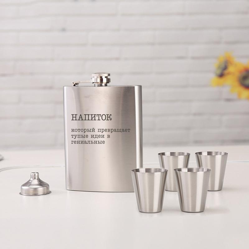 Набор фляга с рюмками "напиток, который превращает тупые идеи в гениальные"