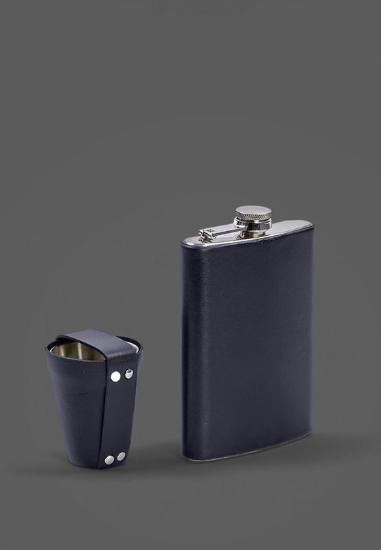 Набір з флягою та чарками у шкіряному чохлі темно-синій.