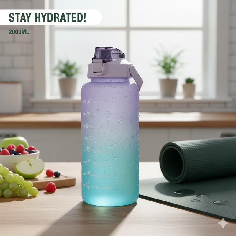 Следите за своим водным балансом с этой стильной и практичной бутылкой, которая станет незаменимым аксессуаром в вашем повседневном ритме. Яркий градиентный дизайн придает ей современный и модный вид, выделяясь среди обычных бутылок. На корпусе расположена мотивационная шкала с отметками, которые стимулируют пить воду регулярно и в нужных объёмах. Особенности: Безопасный материал: Изготовлена из экологически чистого, BPA-free пластика, полностью безопасного для здоровья. Объем: Оптимальный для ежедневного использования -- удобно брать с собой на работу, спорт или прогулки. Герметичная крышка: Обеспечивает надежную герметичность, легко открывается и закрывается одним движением. Мотивационная шкала: Удобные отметки на корпусе помогают контролировать потребление воды и мотивируют оставаться гидратированным. Удобная ручка: Практичная ручка облегчает переноску и использование в любой ситуации.