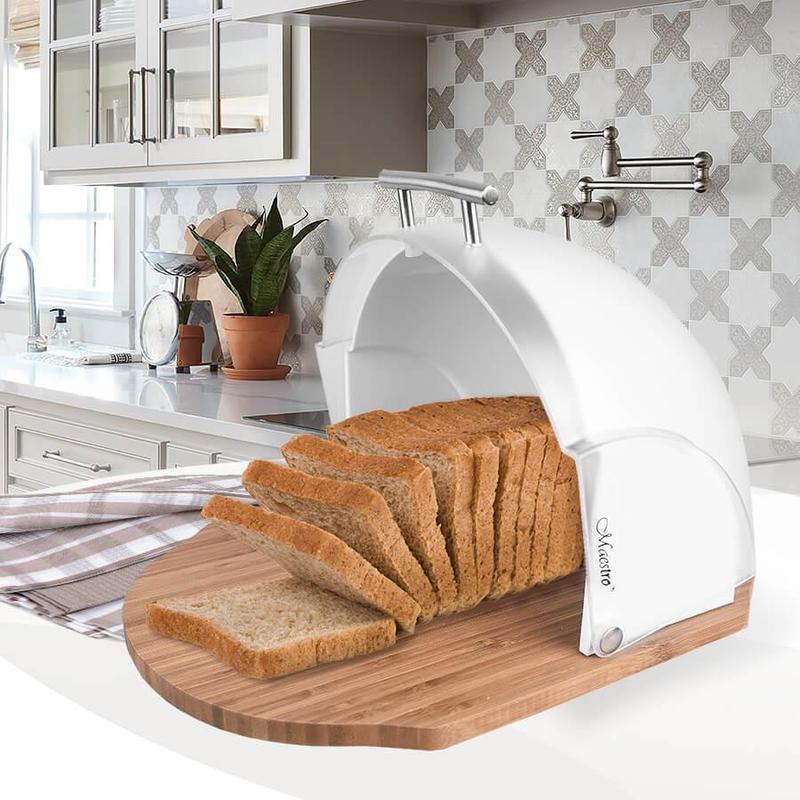 Хлебница с прозрачной крышкой и деревянной доской для нарезки maestro mr-1678-white