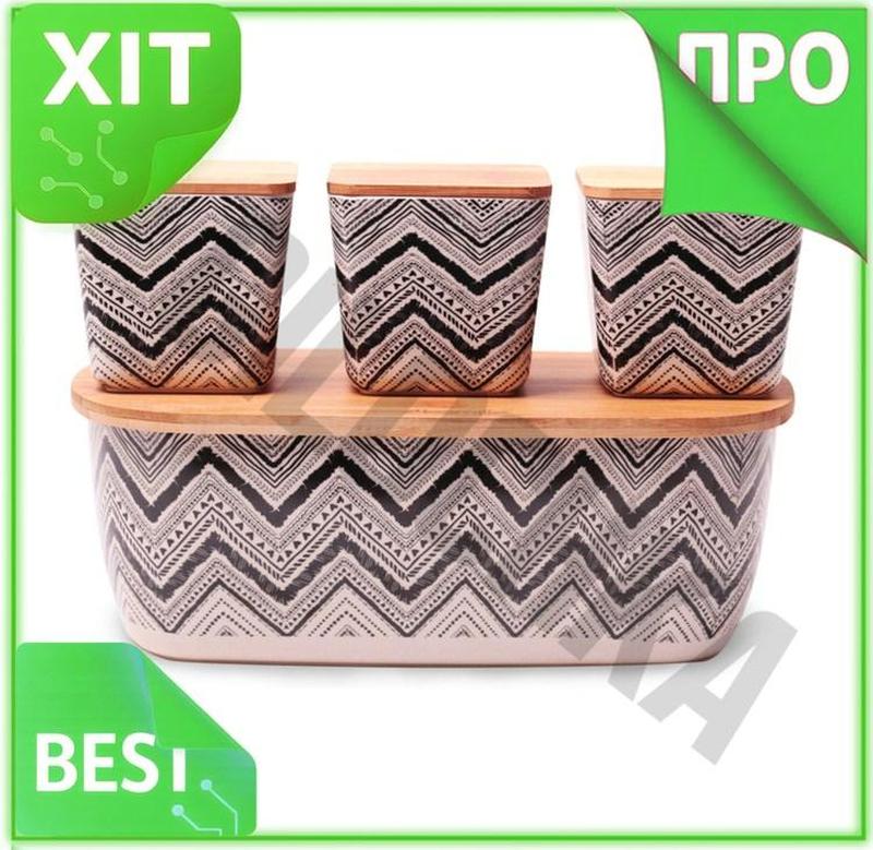 Ve хлебница kamille бамбуковая с new version 3 емкостями для хранения хлеба и продуктов ко...