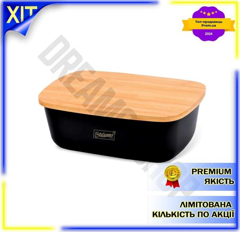 Dm хлебница maestro черная спецификация 2.2 для хранения хлеба с бамбуковой крышкой и плас...