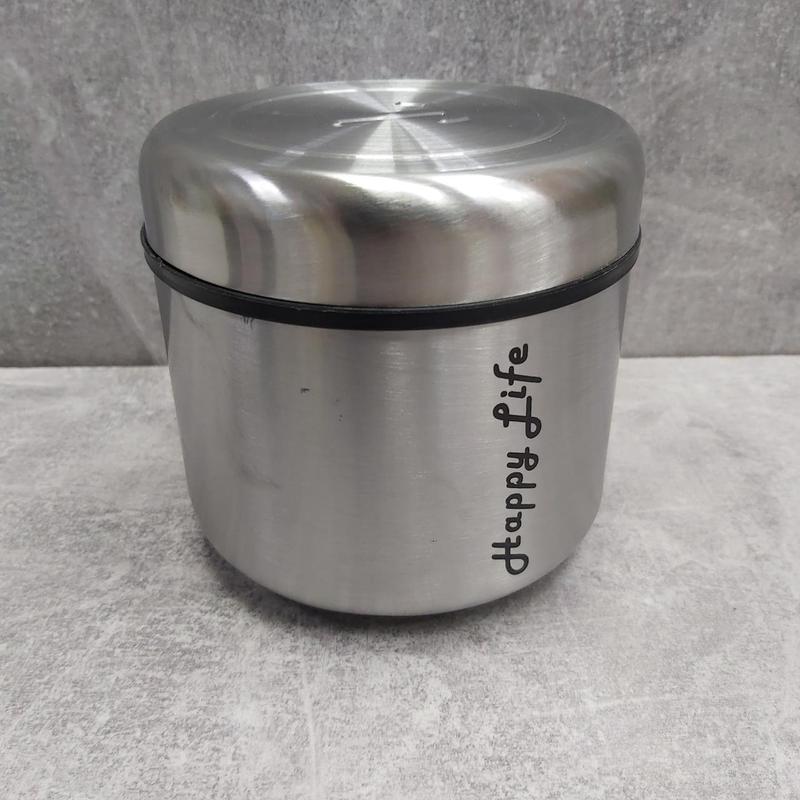 Банка для хранения "Happy Life" 700 мл A-Plus 1718 Емкость для сыпучих изготовлена из стекла и нержавеющей стали. Контейнер смотрится очень элегантно, а заполненный продуктами станет не только практичным помощником, но и декоративным дополнением вашей кухни. Крышка плотно закрывает емкость, благодаря чему она идеально подходит для хранения различных сыпучих продуктов – муки, круп, макаронных изделий или сахара, а также кофе, чая, сушеных овощей, трав, сладостей. Характеристика: Вид: Банка Материал: Стекло/нержавеющая сталь Объем: 700 мл Цвет: Стальной/прозрачный Назначение: Для хранения Высота: 11 см Диаметр: 10,5 см