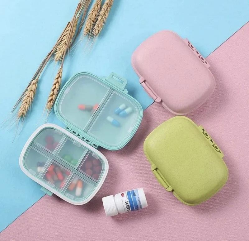 Портативный органайзер для таблеток 2х уровневый и водонепроницаемый 8 отделений В наличии цвета : БИРЮЗА / ЛАЙМ