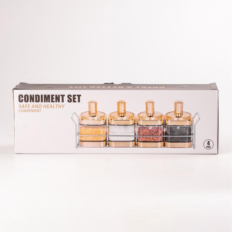 Набор из четырех банок для сыпучих продуктов - это удобные стеклянные контейнеры для хранения с ложками, расположенные на металлическом основании.Стильные и функциональные, банки предназначены для хранения большого количества продуктов, сохраняя их свежесть и легкость извлечения. К каждой банке прилагается ложка для удобного извлечения. Банки поставляются с металлической подставкой, чтобы их можно было аккуратно разместить на кухне.Характеристики. Тип: банка для сыпучих продуктовКоличество: 4 шт.Материал контейнера: стеклоМатериал крышки: нержавеющая сталь Особенности: с подставкой
