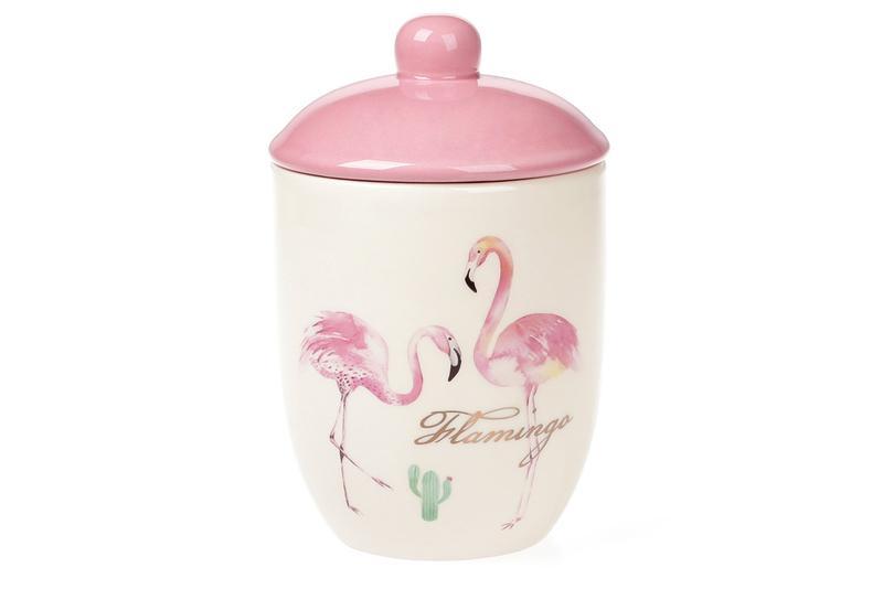 Банка керамічна для сипких продуктів рожевий фламінго з золоти...
