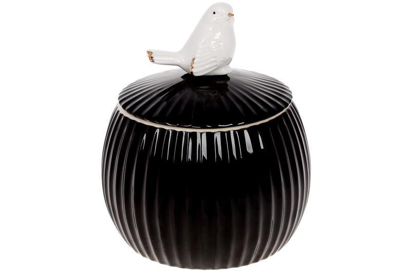 Банка порцелянова з об'ємним декором пташка 1.35л, колір - чор...